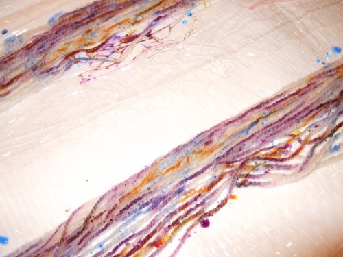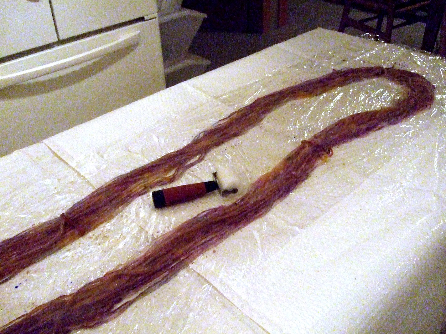 I got a jump start on New Year’s resolutions today by cleaning up and lubricating my Schacht spinning wheel. The wood was getting quite dry, so I used the Howard’s Feed-n-Wax (with its lovely orange scent), some steel wool and a soft cloth. Now she glows and spins like a dream. I have several spinning projects in mind, and we will have a spin-in for Rock Day on Saturday Jan 2, up at the guild room.