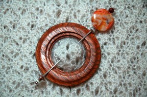 By yesterday we were back to working on projects – Rick starting some laundry room cabinets for the job up in Mazama, me going through the stone beads I picked up in Seattle for making more shawl pins. Some of them have holes just a little too small or not drilled completely straight from either end, so they don’t fit on the steel shafts I am using. Bummer! The small ones I could ream out with a diamond file I got at the bead store. Tedious, but do-able. Today I found some diamond drill bits at a rock shop online, and ordered them. Rick has a “Fordham tool” which I will be able to use to ream out and enlarge the holes on the larger stone beads. A new adventure…