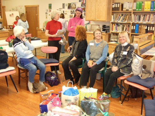 Yesterday was our guild meeting and the annual Fiber Exchange. We run it kind of like a white elephant (draw numbers, go in turn, but something can be taken away from someone else up to 2 times). The fiber is for weaving or spinning, although there were other fun things in some of the packages like chocolate! It is supposed to be nice enough to be used in a project but not expensive or “too nice.” Mainly leftovers from projects, or bargain finds that are being passed on. Lots of fun!