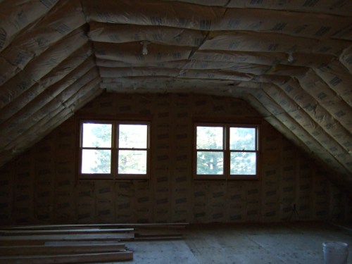 In a couple of weeks our drywall guy will be available to finish it off, and we’ll be able to paint the walls and ceiling. We’ll probably just paint the floor for now, as we haven’t thought through what we will want up there, and can’t spend the extra money now anyway. Then we can start moving in my looms and knitting, spinning and weaving materials. We will also set up a design/drafting area for Rick. Eventually we will finish the bathroom and put in a sink area and counters for dyeing. It’s going to be great!