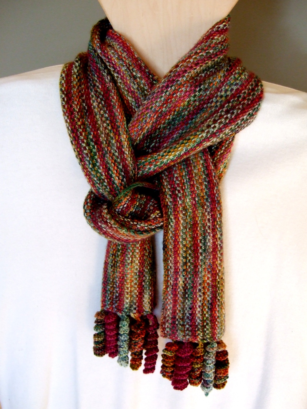 Very pretty scarf, and I like the corkscrew curls on the end a lot. I can’t wait to see/hear what your idea is!