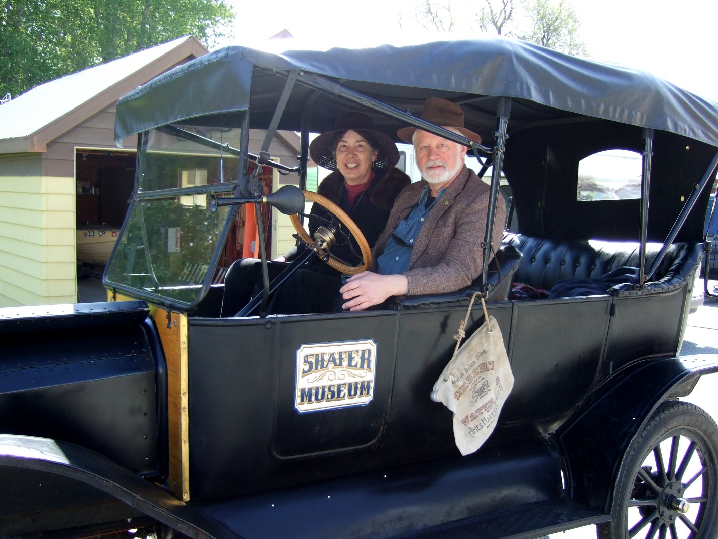 Sometime in the last month, Rick was asked if he would be interested in becoming the new driver for the 1914 Model T that belongs to the Shafer Museum in Winthrop. He said yes, but nothing happened until this week. On Wednesday he got his one and only driving lesson, and today (Saturday) he drove it in the Winthrop ’49er Days parade, with me riding shotgun (actually operating the “ooga-ooga” horn with my foot….).