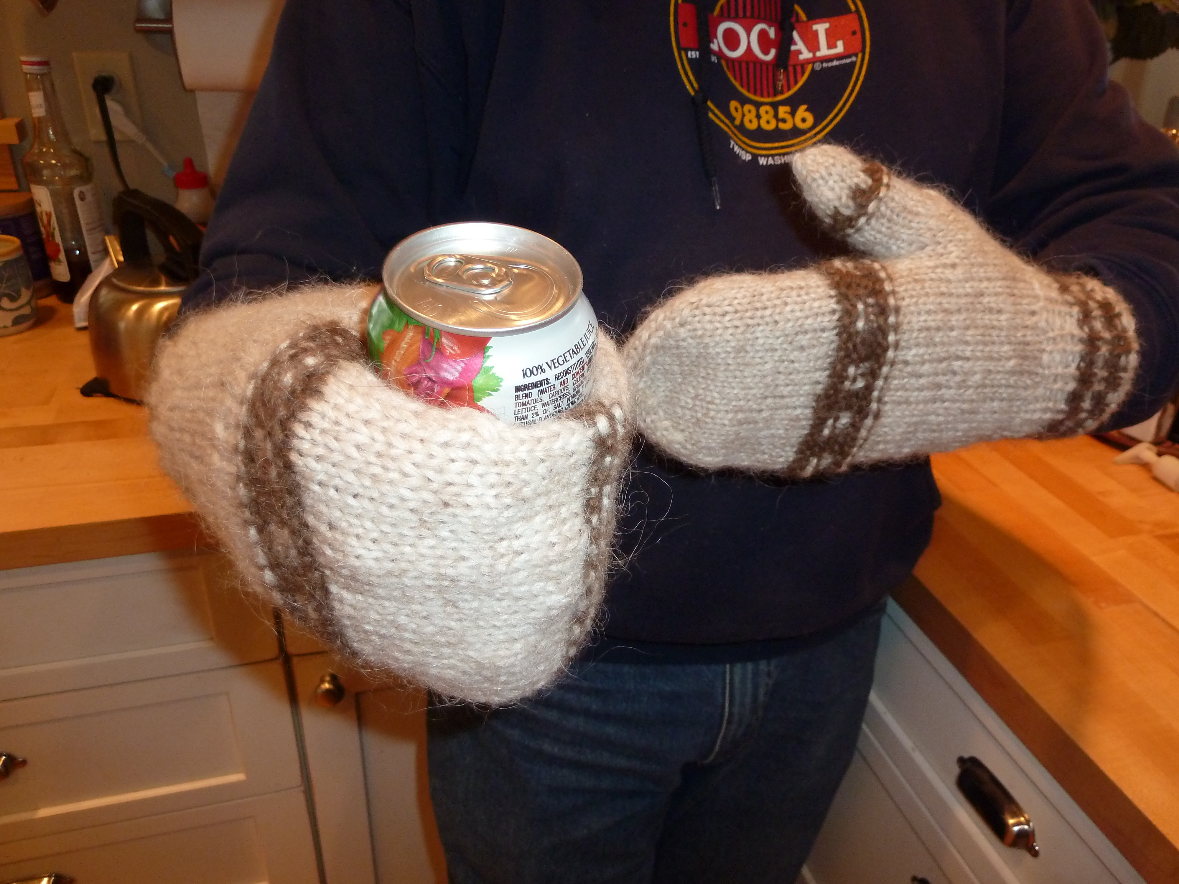 We got out for a ski on the cross-country trails on New Year’s Day, and the conditions were excellent despite the odd weather we continue to experience (little snow, rain, warming trends, etc). The next morning our friends from Wenatchee stopped by for brunch and to see the Wolf Creek house – they hadn’t been here yet. They had a great pair of “beer-can-holder” mittens that someone had brought back from a trip to Iceland. I will definitely be making a pair of these: