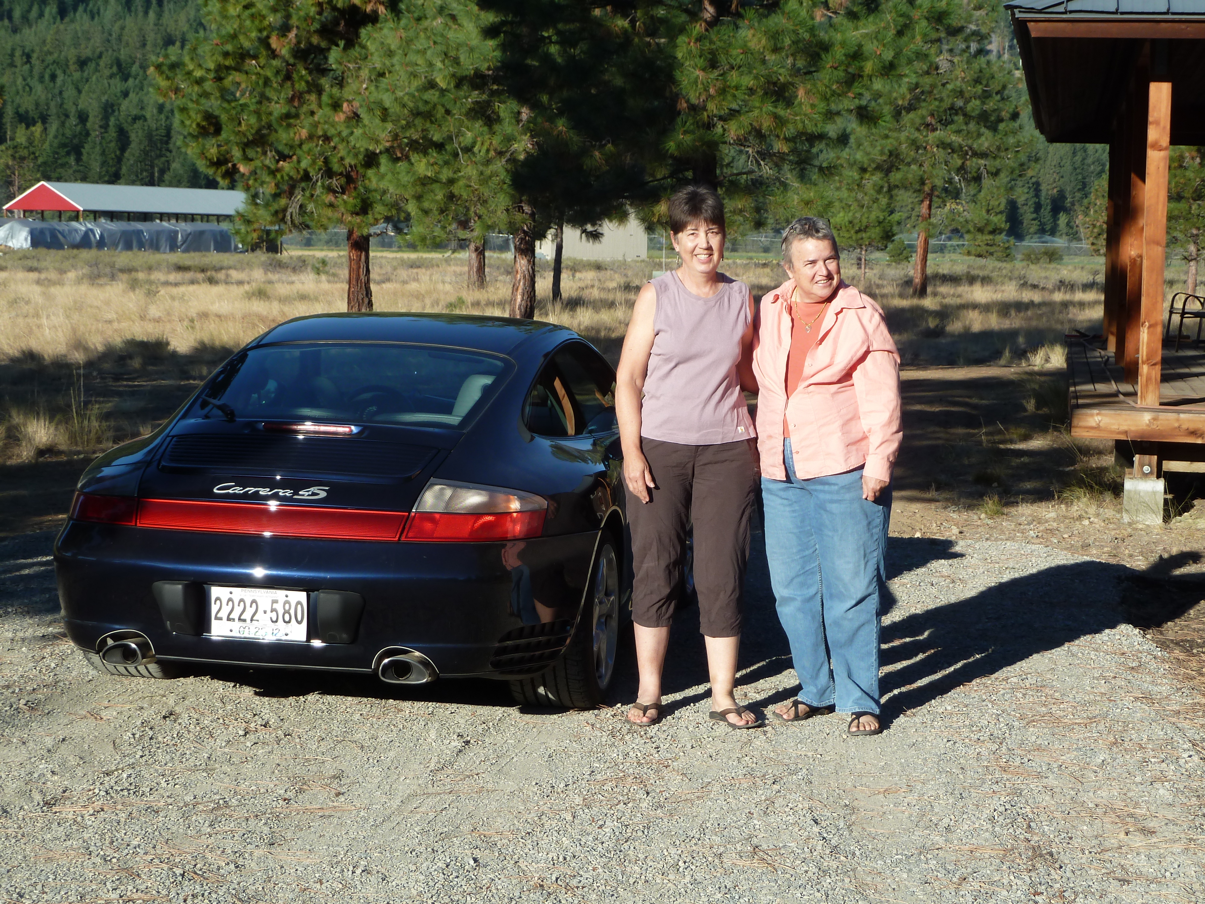 Day 5, Friday, it was on to Idaho and Spokane, WA and the air quality did clear up and allow us to enjoy the mountain scenery a little better. From Spokane, the most direct route to the Methow Valley follows smaller state highways, which were a lot of fun to drive with little traffic (still being good about speed!) with ups and downs and curves. That Porsche has plenty of power, and really hugs the road. Because of the time zone change, we made it here by 4:30 and had time to wash the car and enjoy a salmon dinner that Rick was ready to cook for us. Sweet!