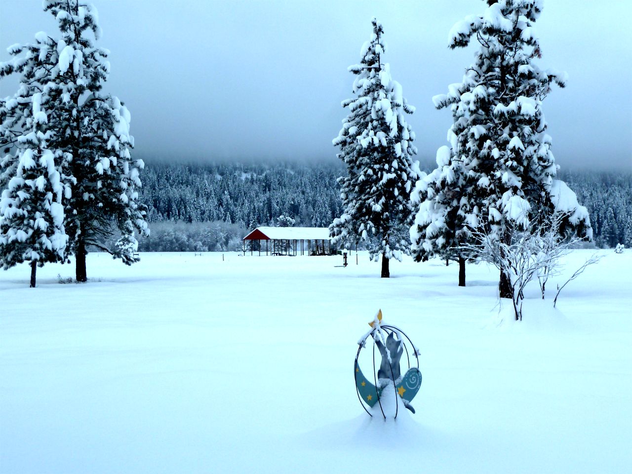 It snowed a lot yesterday – maybe a foot at the house (we are down on the main valley floor near Winthrop, elevation about 1760′ ). Last week our snowplow guy called and said the engine on his truck had gone out and he wouldn’t get it back until Thursday Jan 10th. We hoped there would be no major snow until then, but obviously that didn’t work out. Then this morning, Rick went out to run the snowblower around and it wouldn’t start. Actually it isn’t even trying to start – it has an electric starter and absolutely nothing is happening.