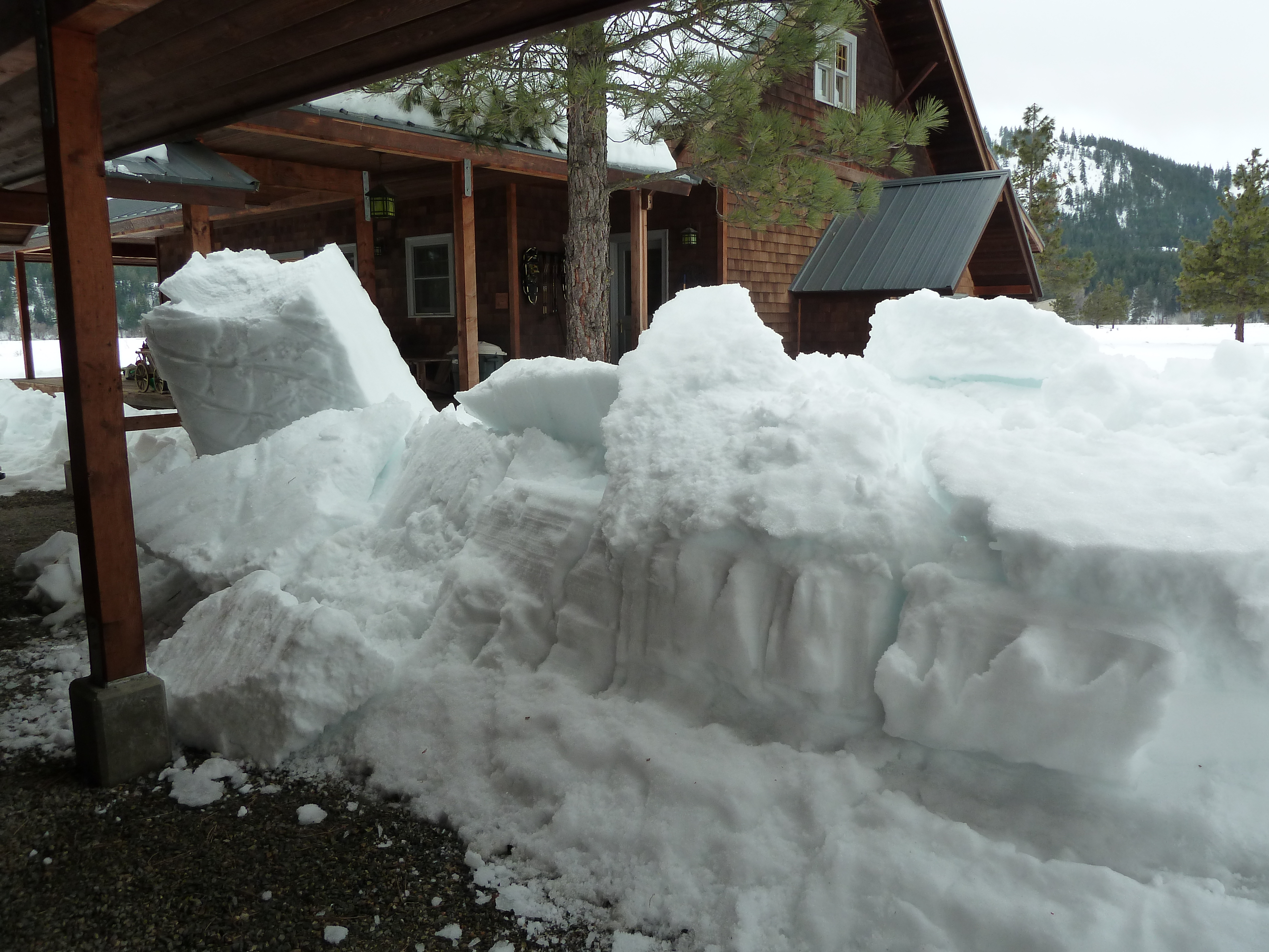 Last night it stayed above freezing and a huge load of snow came down off the shady side of the studio roof – including one really huge chunk. It looks like a mattress fell off the roof!