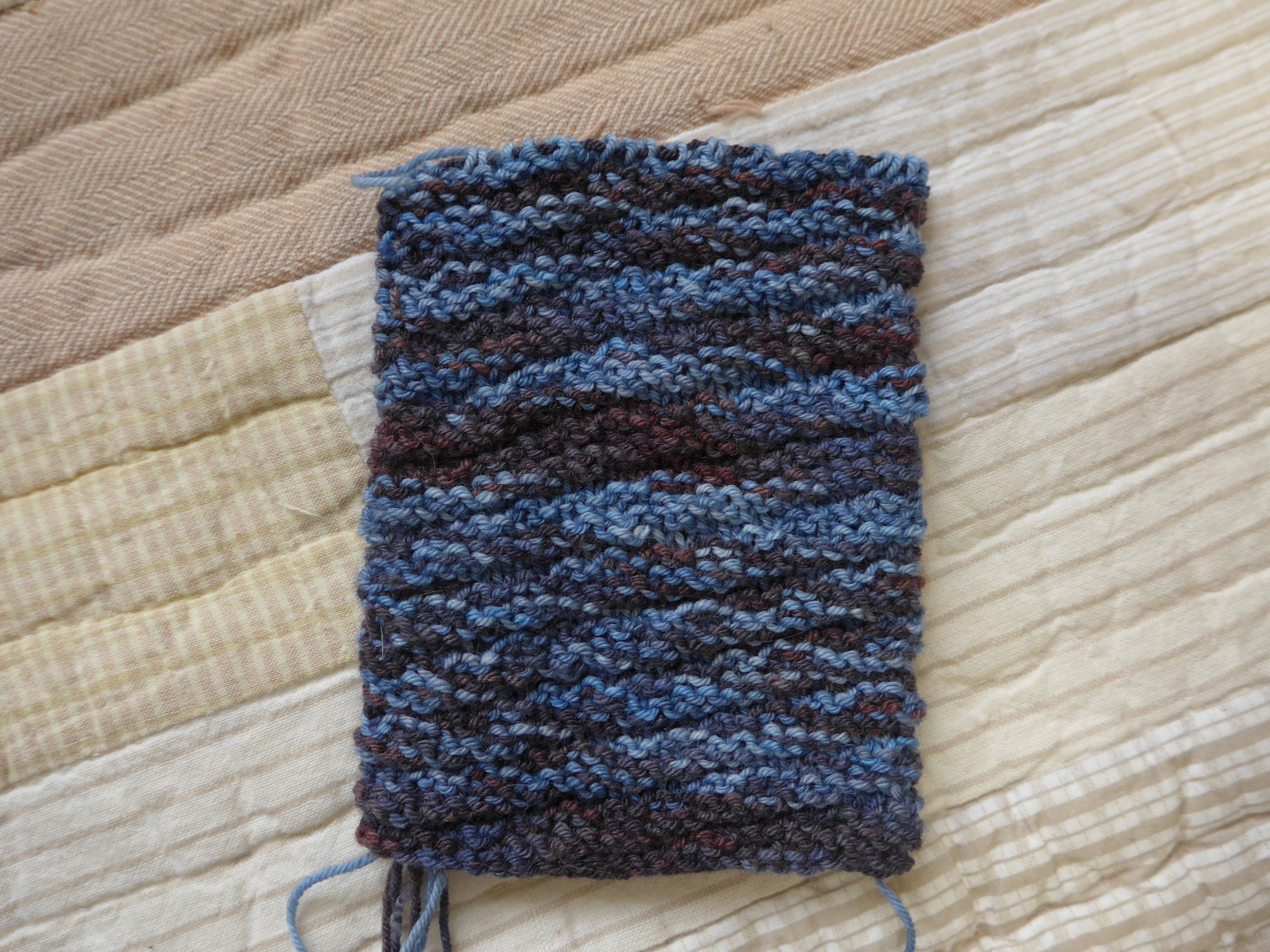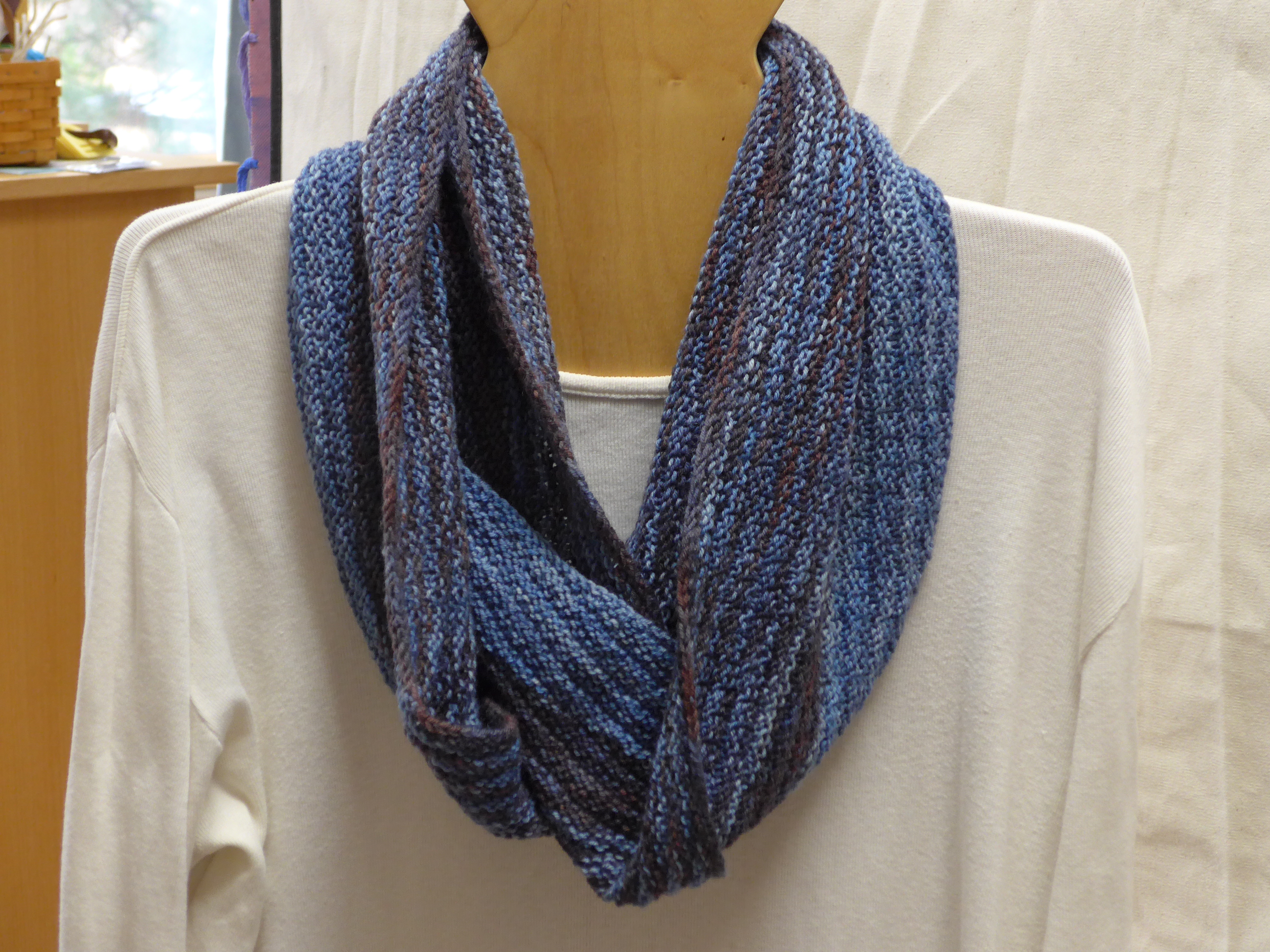 I really like the one shown below. I have used Noro Silk Garden in the past – it is just the right weight and I love the feel of it with the silk and kid mohair in it, plus the way it changes color along the length of the ball of yarn is always a surprise and very effective in these hats. But I can’t afford to buy Noro Silk Garden at full retail for hats I am selling in a gallery! I have only used odd balls I picked up at stash reduction sales or sale bins in stores/online. But I found some Noro “Silk Garden Lite” in my stash and although it is thinner, I found if I strand it with some Rowan Kidsilk Haze (or similar very thin kid mohair/silk yarn) it is just perfect! So that is what I used for this hat: