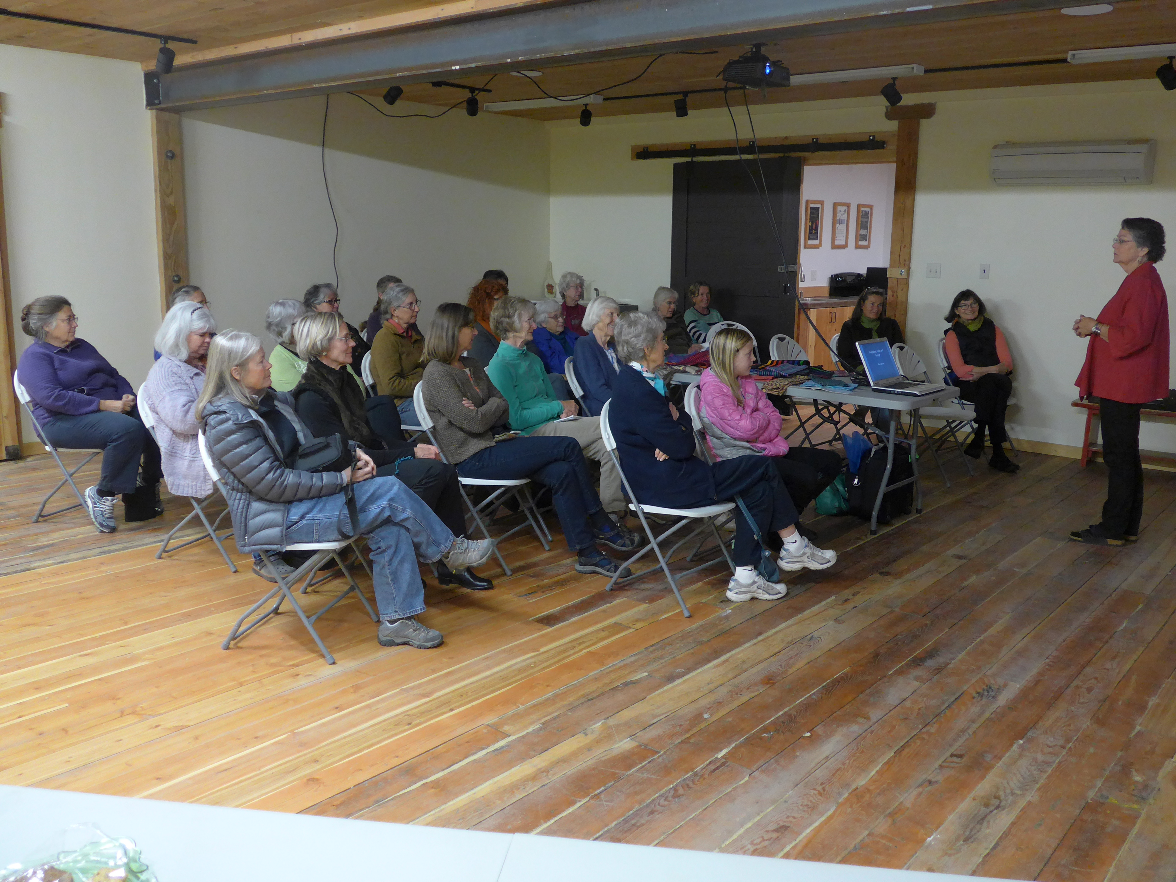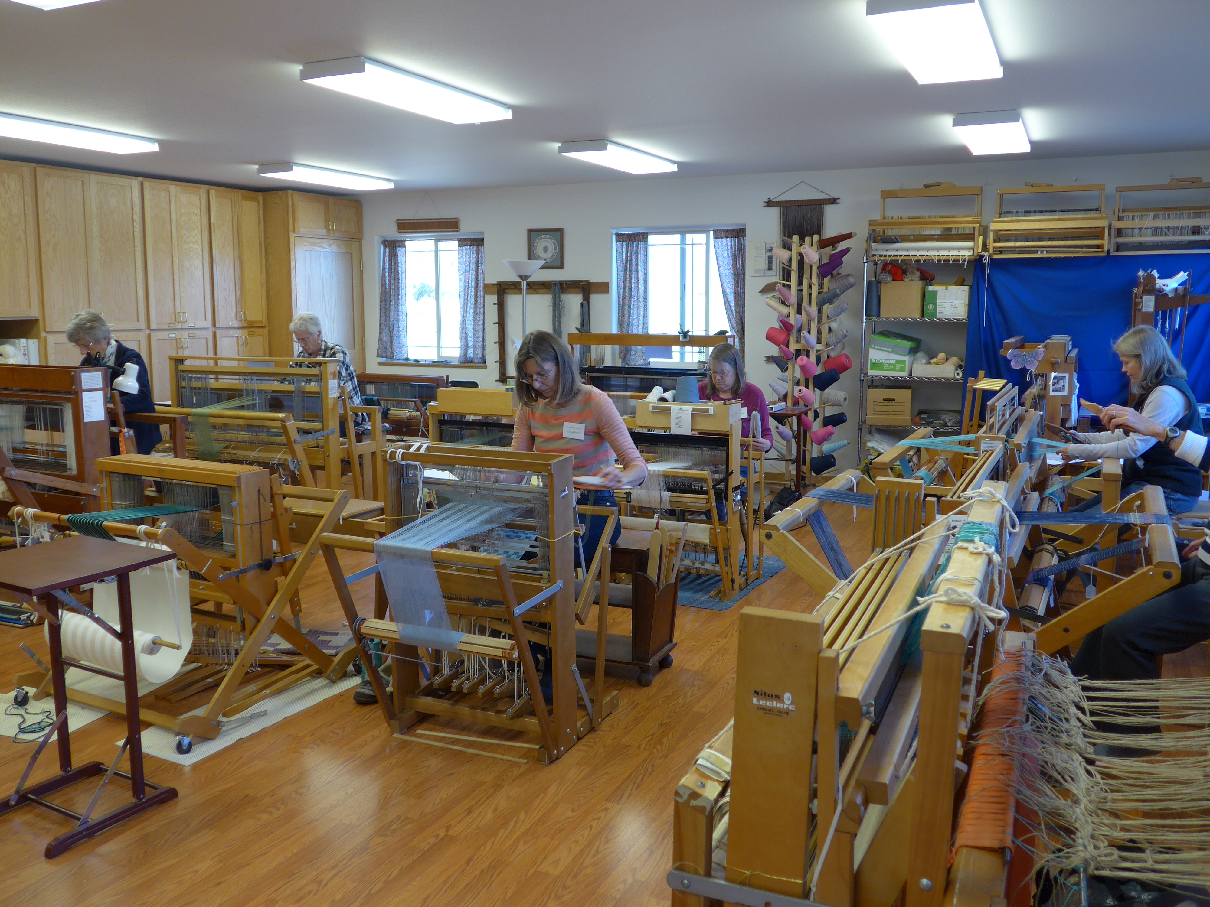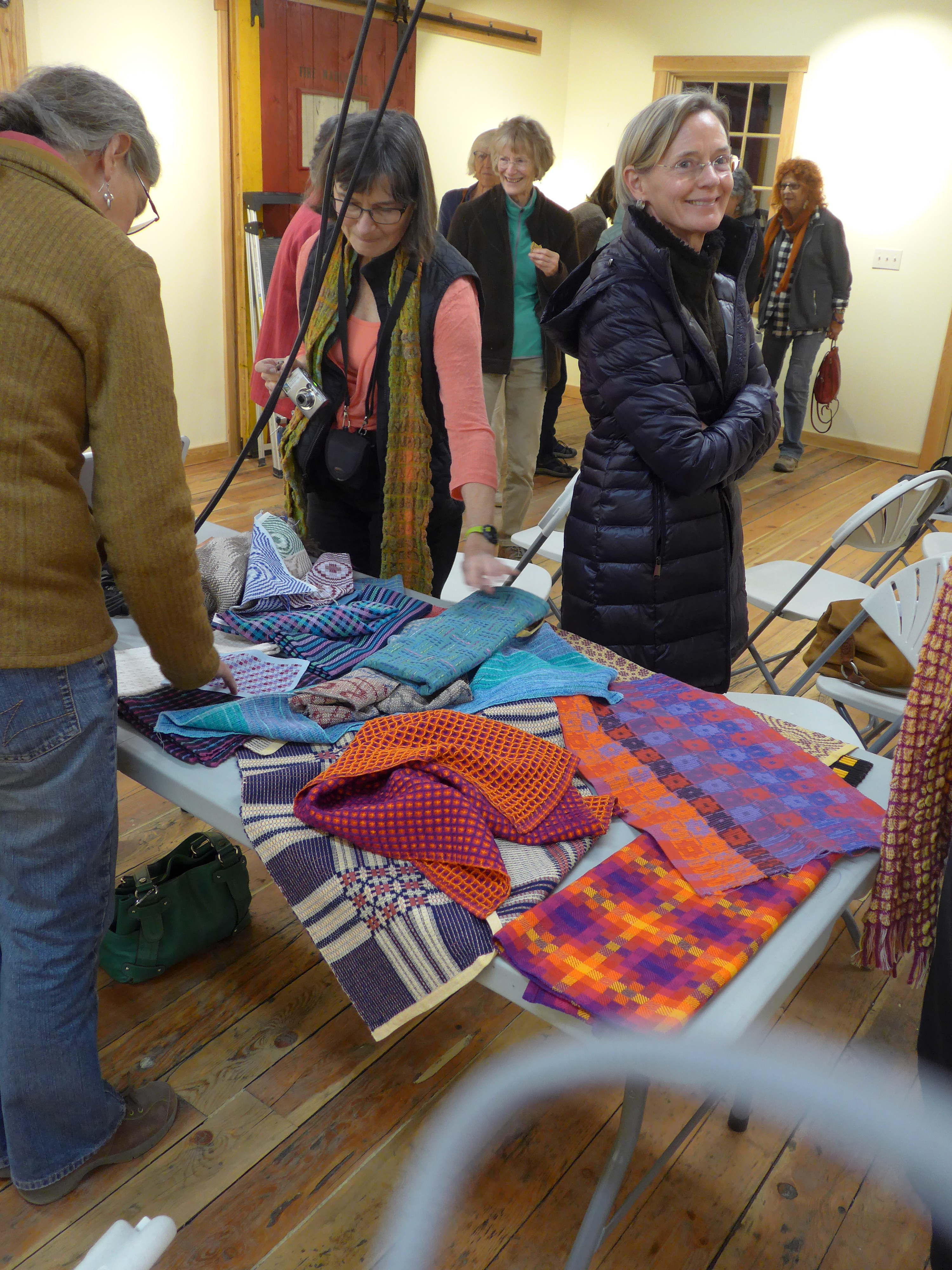 I was running low on rugs after the guild sale, and after placing some at the 2 galleries down in Twisp, had only one at the Winthrop Gallery (a member-run coop gallery). Then they sold that one last Saturday (which is a good thing, but yikes!). So this past week I finally got the 50-yd rug warp on the sectional beam of my 48″ Macomber and am back in the rug weaving business. I have all those bags of Pendleton blanket selvages we brought back from Portland, OR as inspiration!
