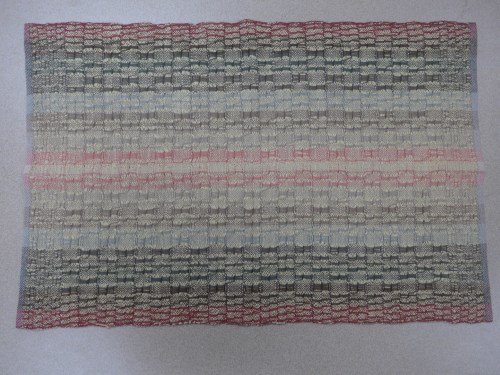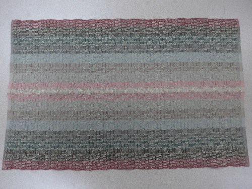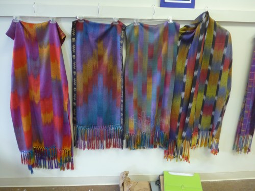 Here are the three cotton scarves I made using the “turned M’s & O’s” technique. I hadn’t gotten pictures of them before the sale, but I am happy with how they turned out and will probably make more in a different color next year.