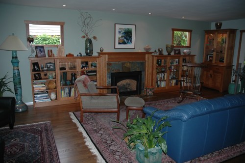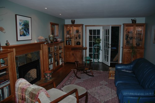 Finally the light bulb went off in my head and I looked on the Macomber Looms and Me blog (also in my sidebar at right). Sure enough there were a couple of entries about cleaning old grunge and dust off the jacks, and about Spiffing up your Loom. I am not sure but my loom may have been sprayed with some WD-40 during a workshop last fall at our guild room – turns out this is a big No-No for Macomber looms. So anyway, I cleaned up the jacks and the wooden slots the lamms slide in as best I could with a warp on the loom, using acetone and a rag, then applied silicone spray and vaseline (recommended for wherever brass parts touch steel parts). The result was a much happier loom and a much happier weaver! The last scarves went off without a hitch as fast as I could go.