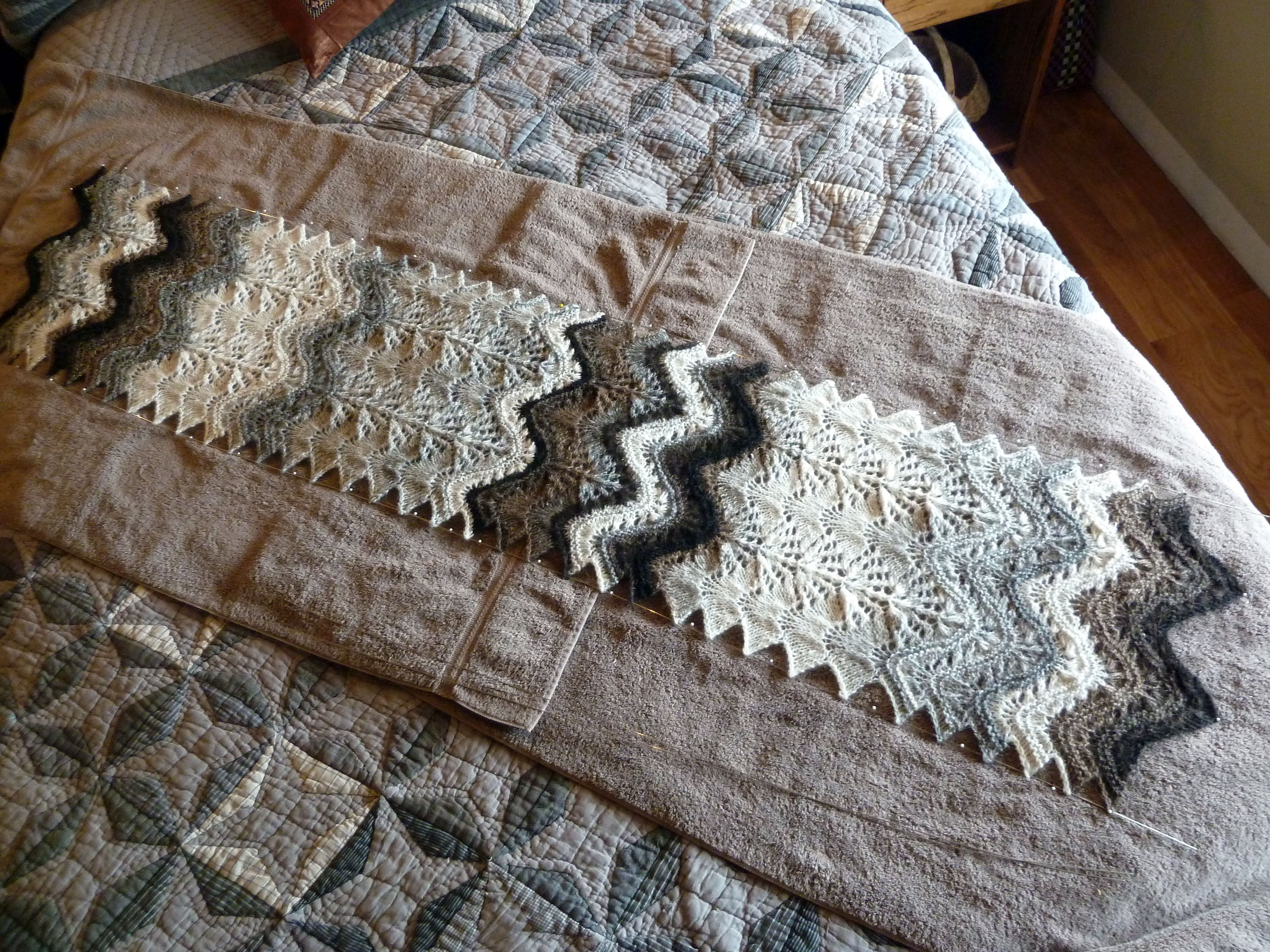 gray/tan Noro Silk Garden and blueberry Cascade 220
