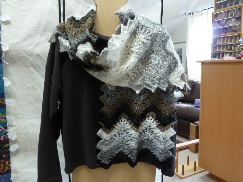 And I am knitting. Finished a beautiful lace scarf using Judith Mackenzie’s 30% bison/70% merino which I still need to photograph. Am finishing up a sweater I started over 2 years ago, as I will need it as a sample garment for teaching a class in Wenatchee at the end of February. And always knitting more Mosaic Mojo hats: