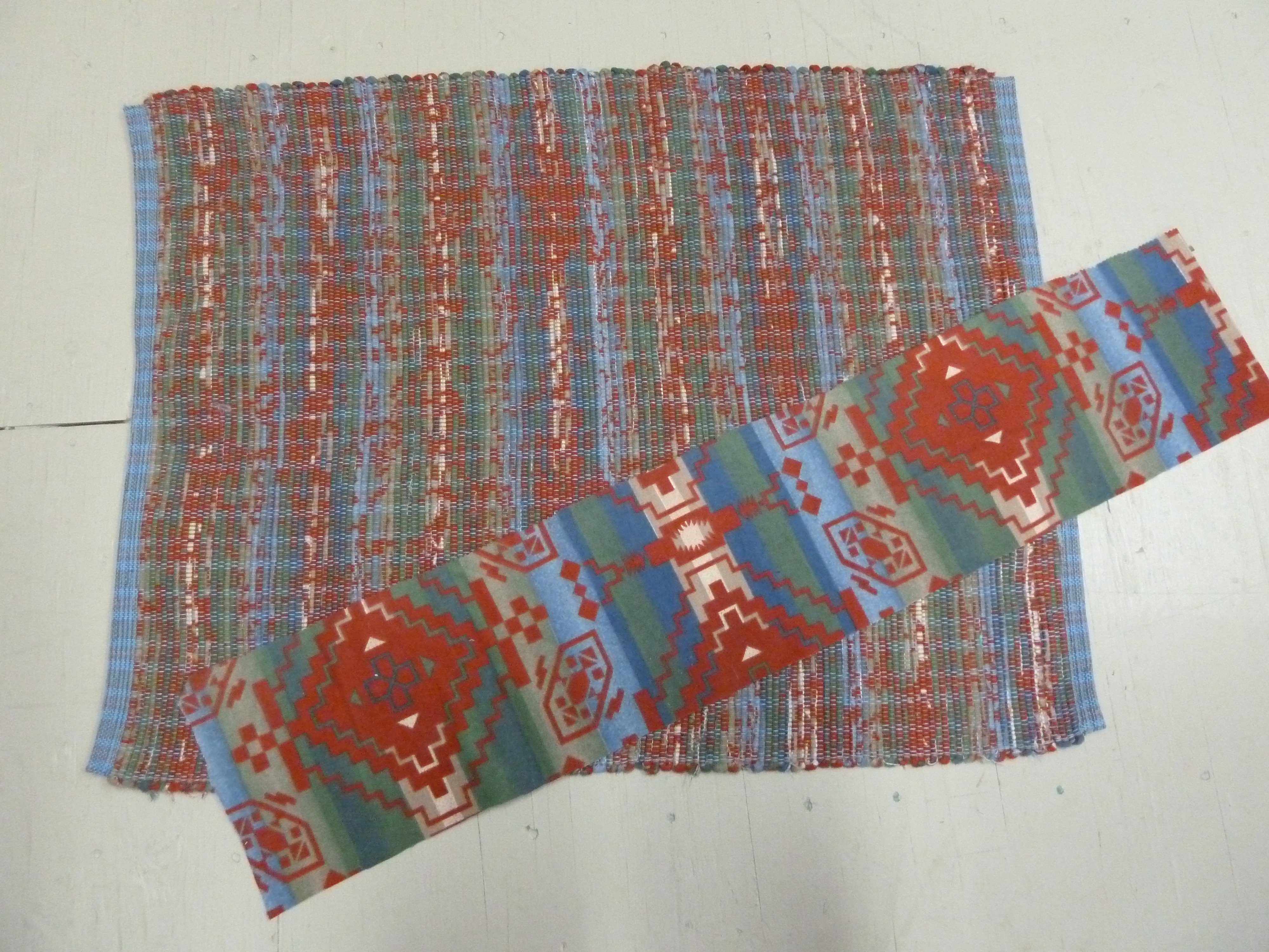 I had to cut a piece off the side of the duvet cover to obtain the required width. That’s the strip that is shown with the rug. As you can see, it definitely preserved the color order and to a degree, the pattern of the original cloth.