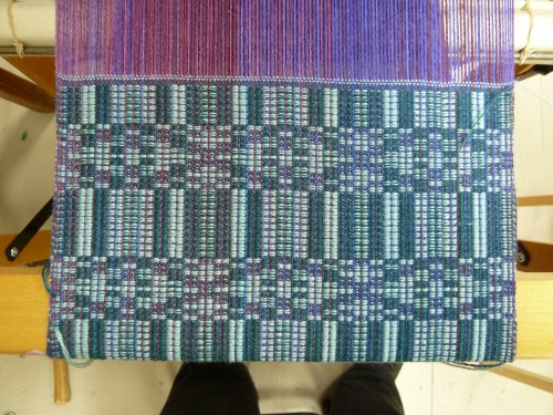 So on Kingston the new loom, I am setting up to do a series of “collapse weave” scarves – they will be very colorful. The thin stripes in warp and weft are fine merino wool, the rest cotton. When I wash them vigorously the wool should shrink and felt more than the cotton, to get a textured surface. The first one is an experiment… in a day or two I should know how it turns out before moving on to the next ones.