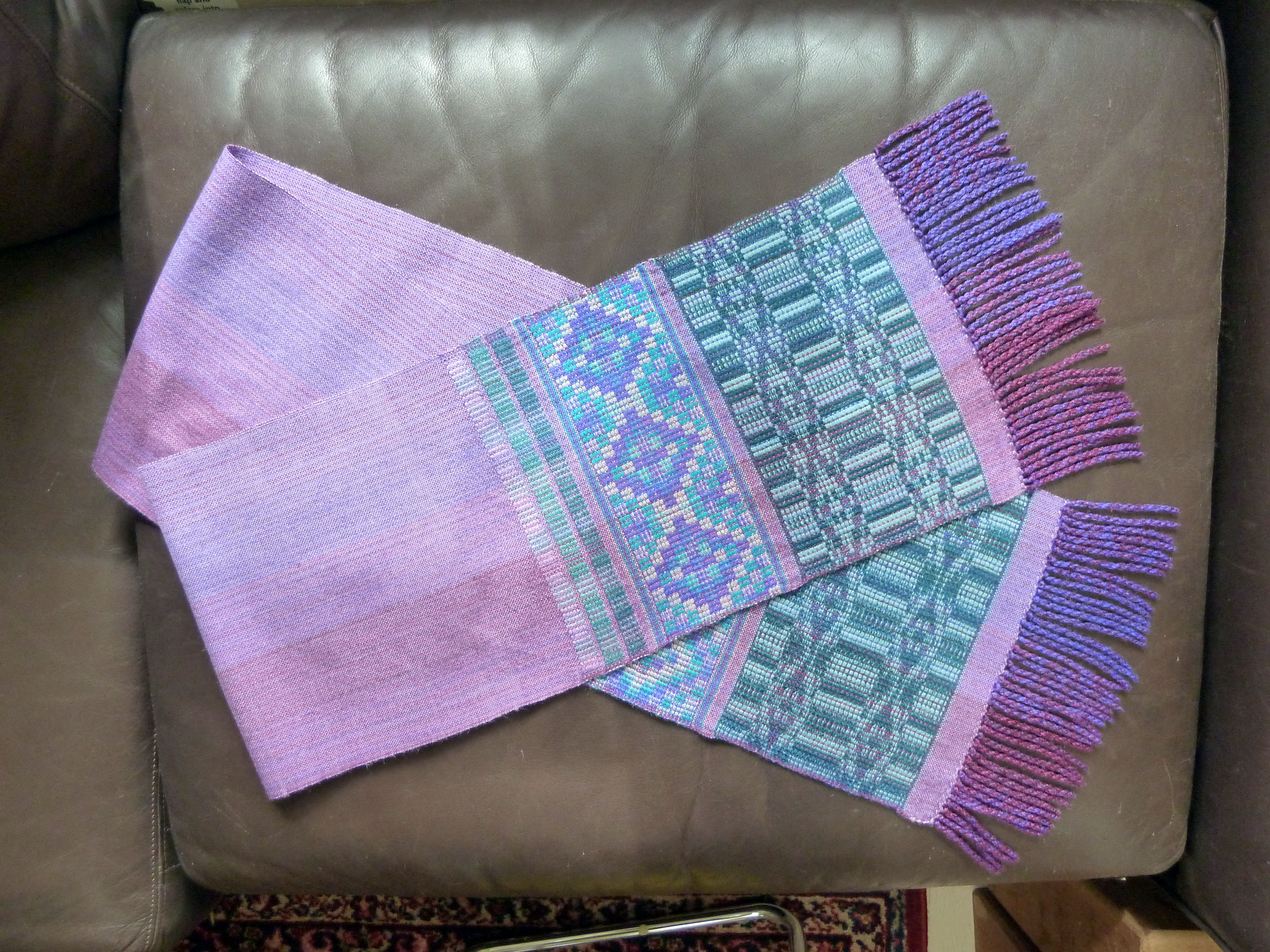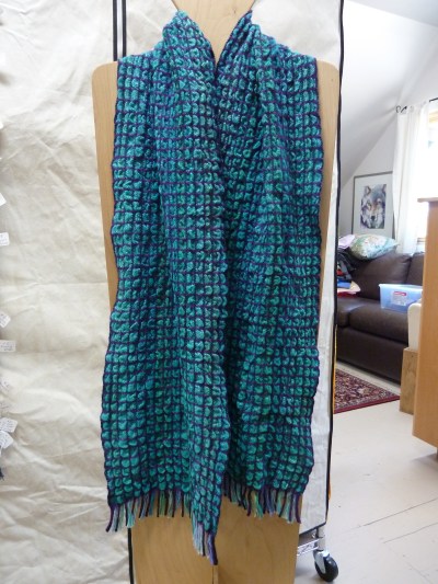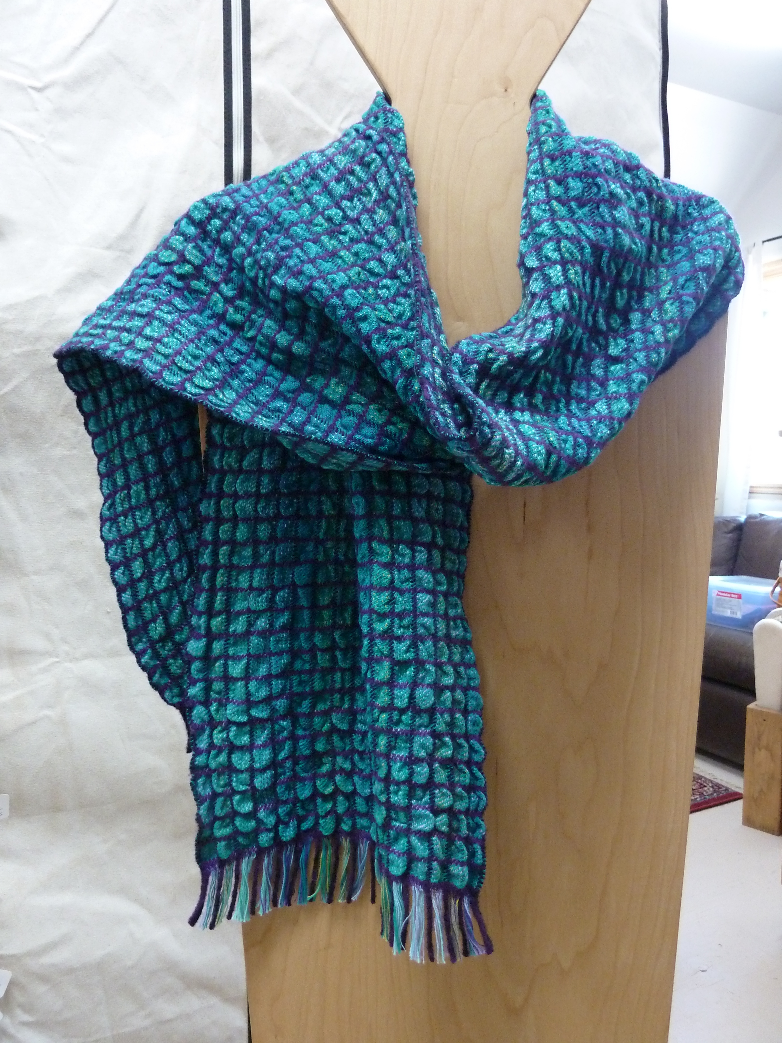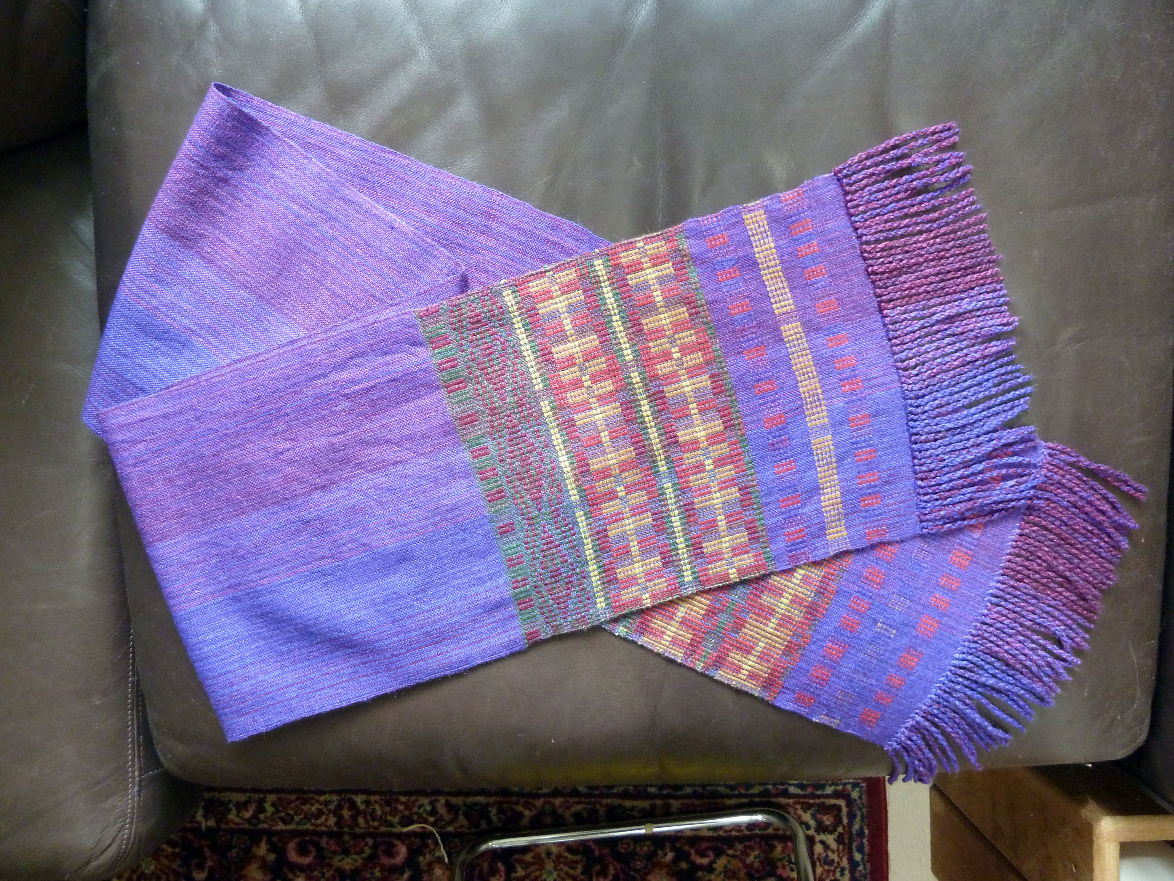 First of all, I did finish two more of the polychrome scarves, for a total of 6 so far. I had them photographed last week in a studio setting so I would have good photos for the advertising and poster of the show I have coming up with 2 other women (early June, Winthrop Gallery).