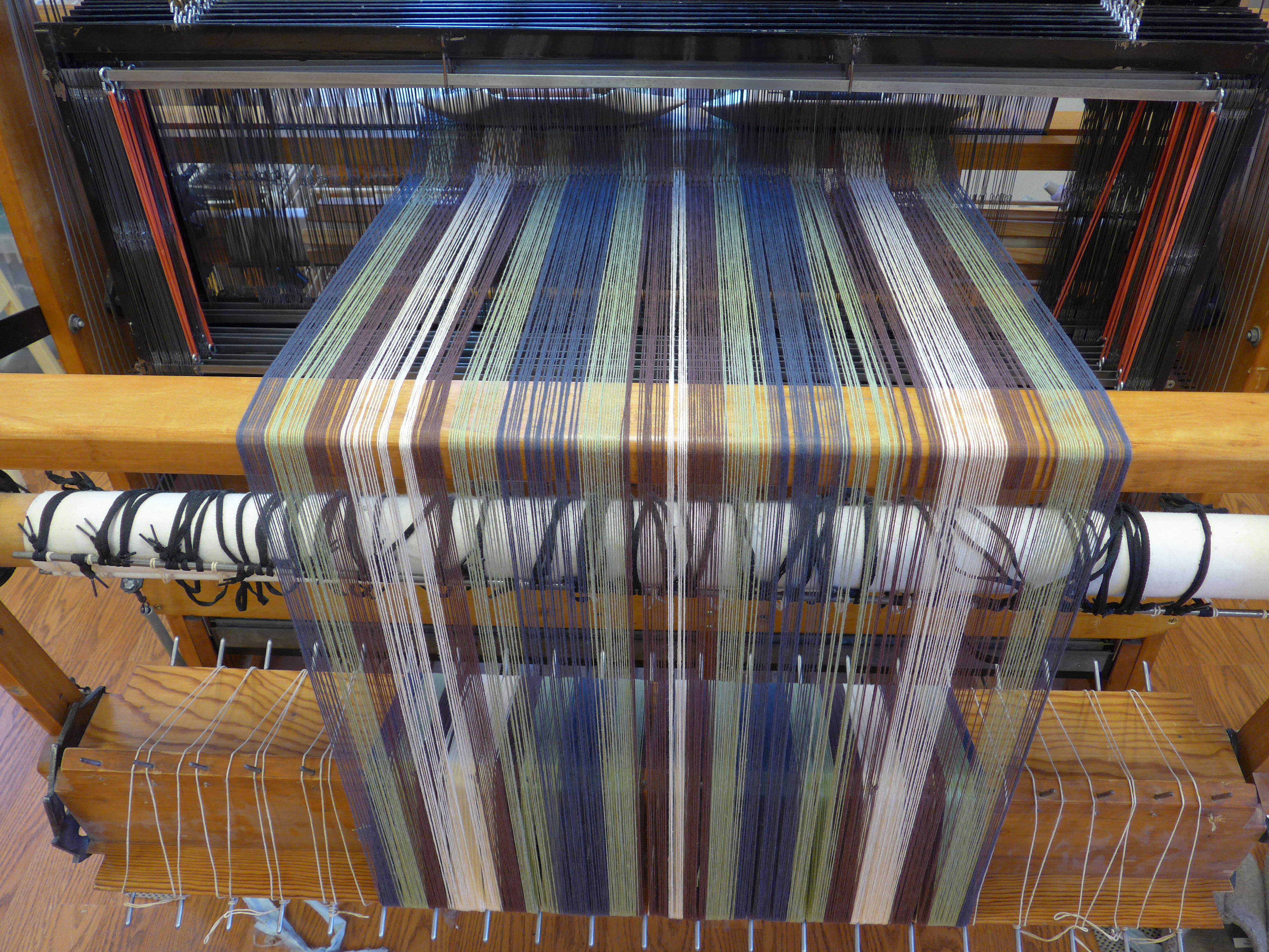 I brought my AVL warping wheel down there and wound a 12-yard warp onto the sectional beam.
