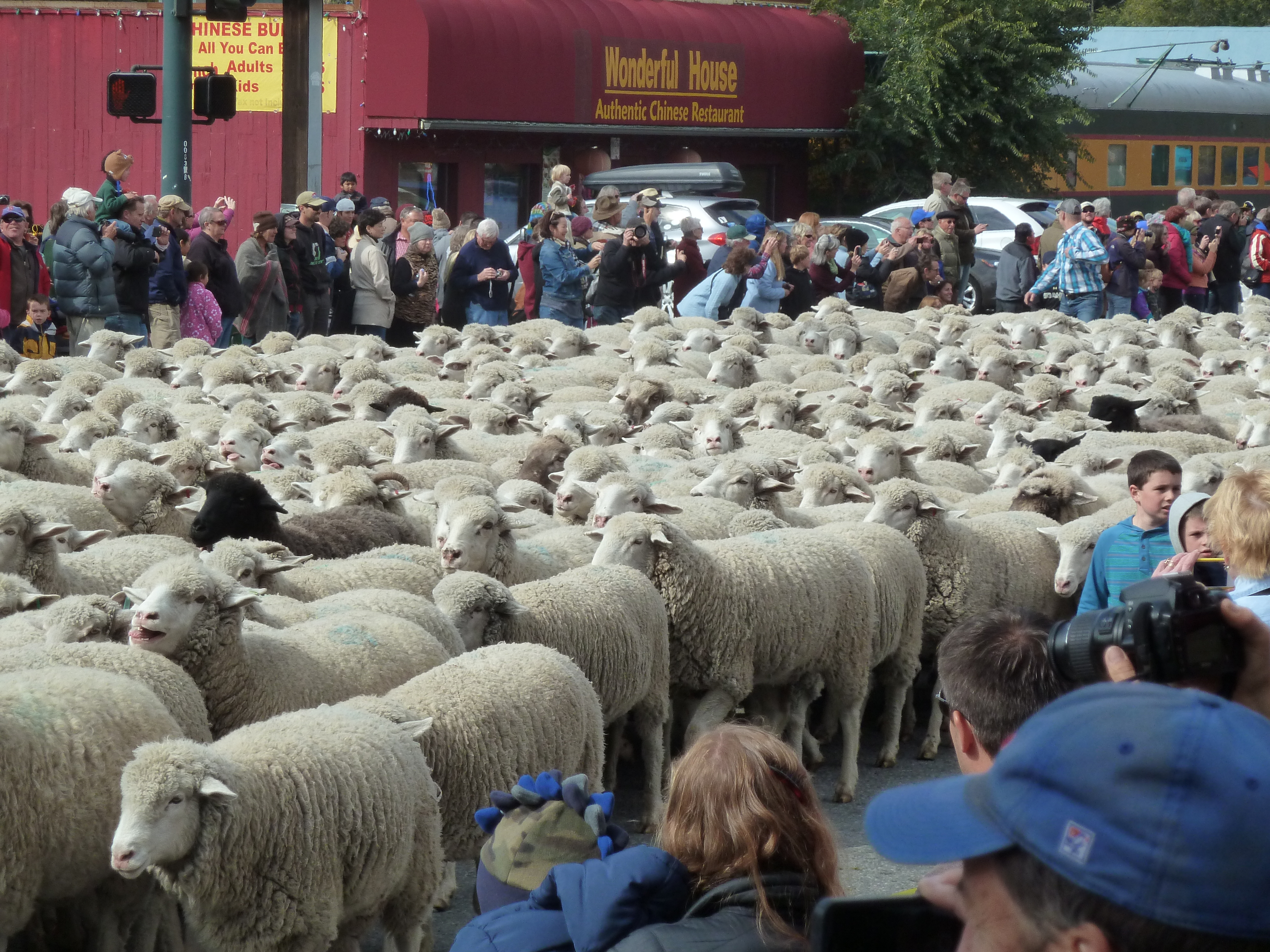 The “grand finale” is when they bring about 1500 head of sheep through town on their way to winter pasture: