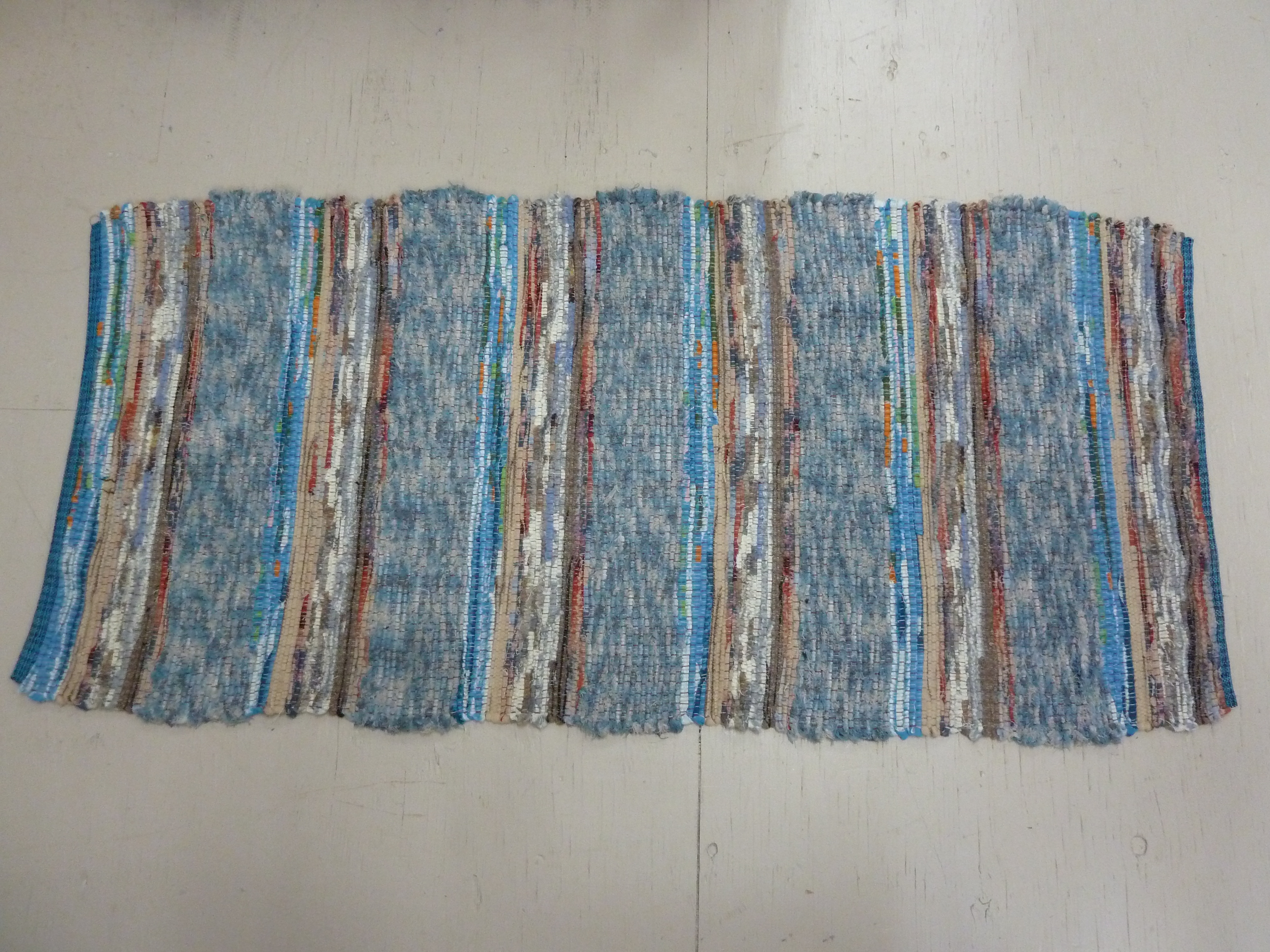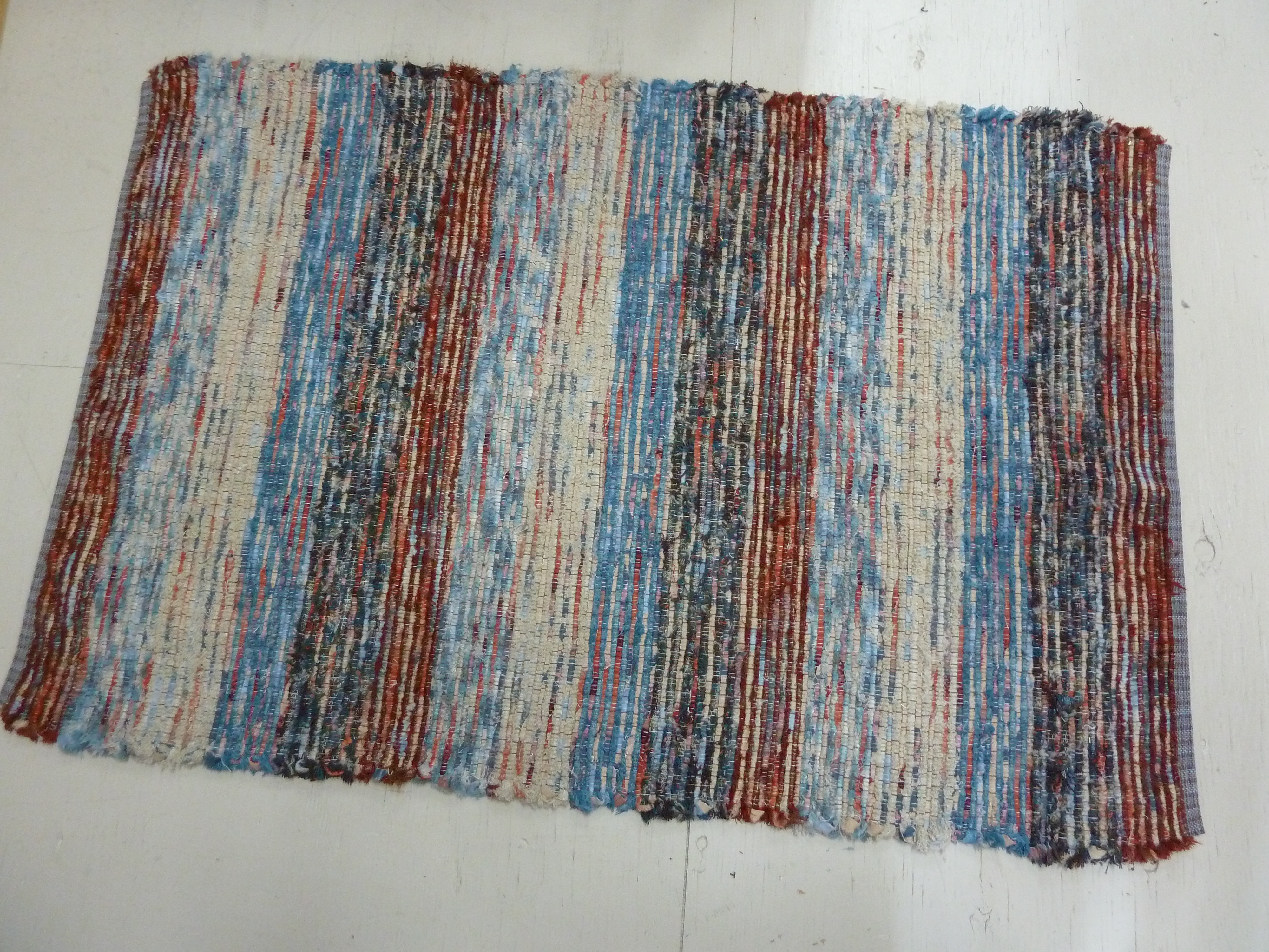 And I have still been weaving away on rugs at home – finished the first warp with the below: