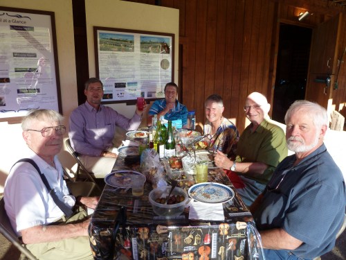 At the Thursday concert, we re-connected with old friends from Seattle (they were actually one of Rick’s very earliest woodworking clients, so we are talking 30 years ago or so). They have a cabin up Cub Creek in the Rendezvous. Well, it turns out they also know my sister-in-law Patti from a long time ago (Harriet taught and mentored one of Patti’s daughters), and Harriet was the officiant at Andy & Patti’s wedding (she was a Superior Court judge in Seattle, now retired). So on Saturday before the concert we had a wonderful picnic dinner together: