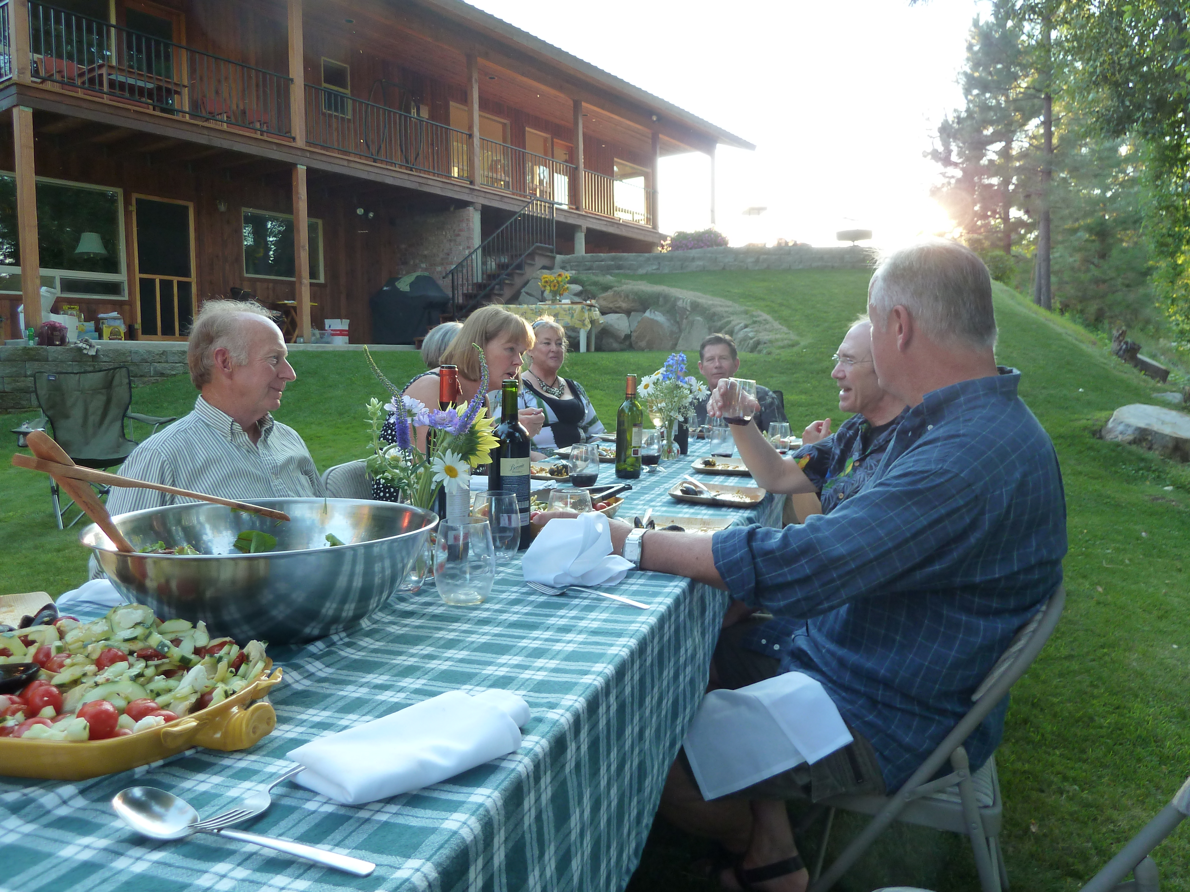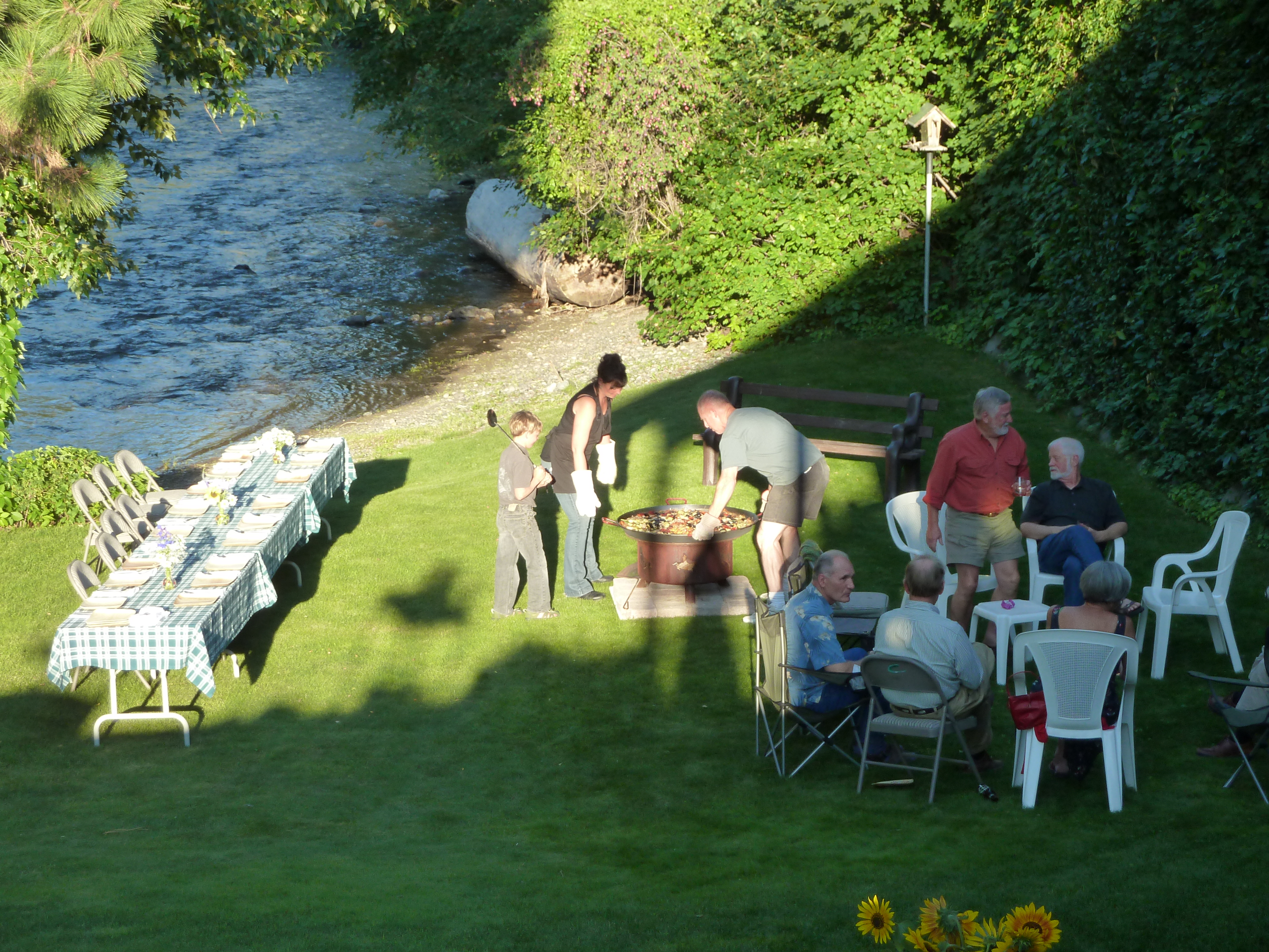 Towards the end of July we were guests at a paella dinner by the Twisp River. Our friends had bid on the dinner at a charity auction last winter. It was a beautiful evening which was actually a lull between thunder and lightning storms (complete with downpours and even hail), so we lucked out: