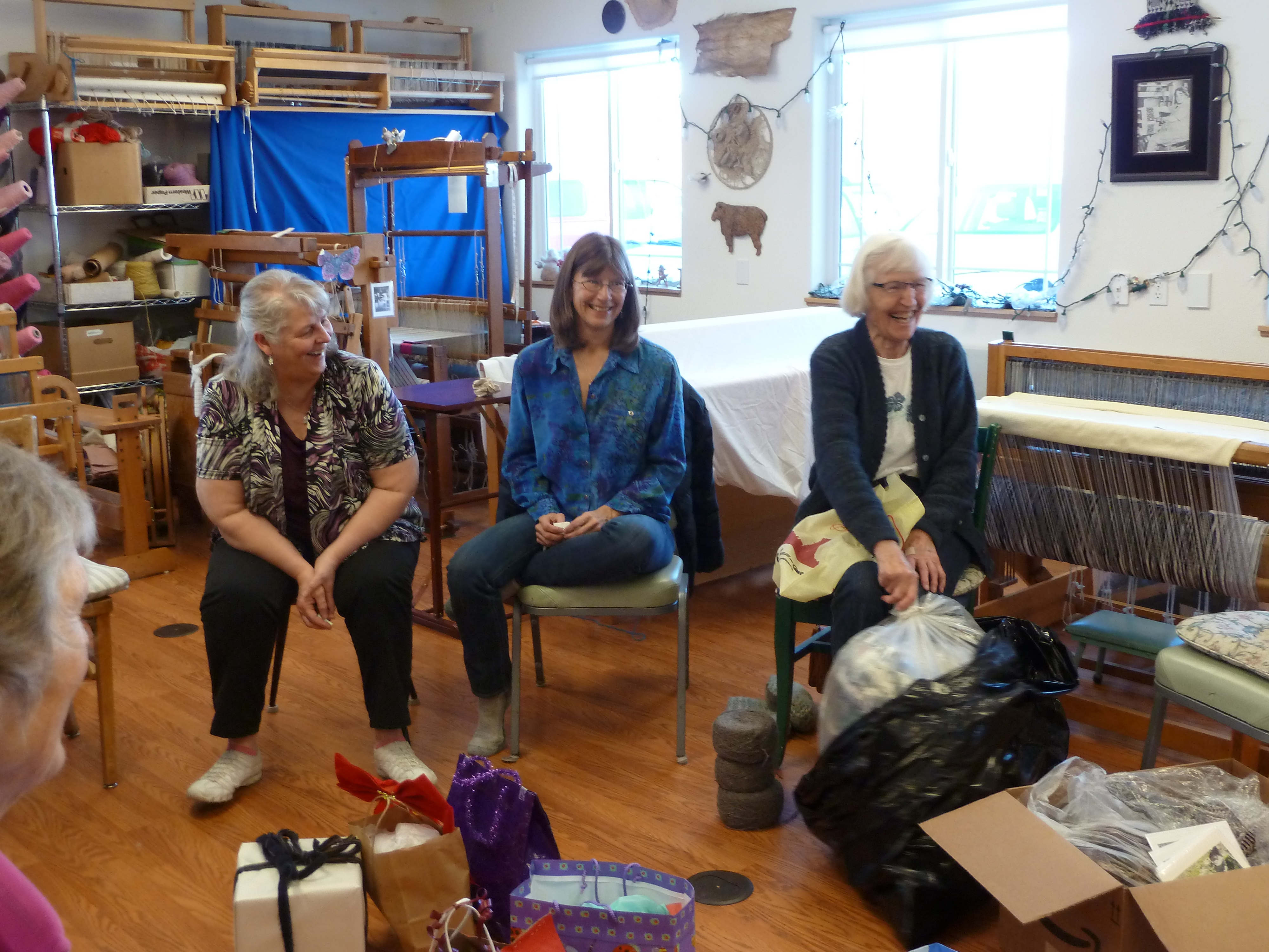 On Kingston, I set up another warp for three of the collapse-weave scarves, which I just finished weaving yesterday, but they still need to be washed and finished.